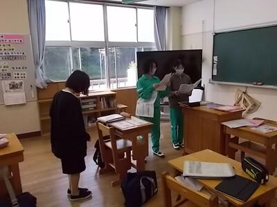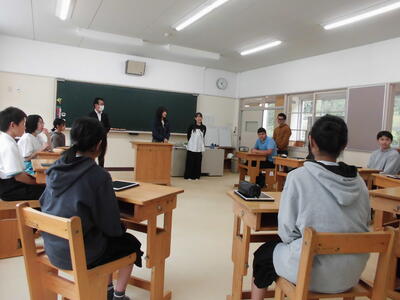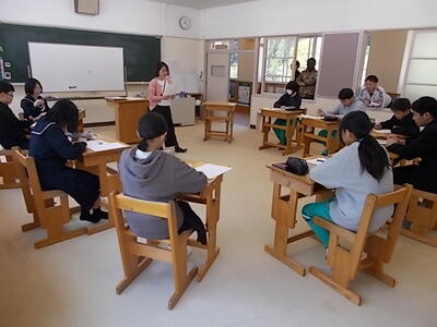 四天王寺大学の学生2名が来校しました。豊根タイムの時間を使い、オンライン寺子屋の説明などをしました。毎週水曜日に開かれるオンライン寺子屋、多くの生徒が利用できるといいですね。