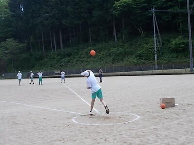 グランドで、ハンドボール投げ、50m走を計測しました。
