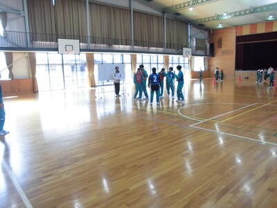 2回目のダンスです。本日は、はじめからノリノリです。先週のはじめと比べるとずいぶんと複雑なステップを練習していました。2班に分かれて練習していました。私が見た時は一方の班で「ける、つく、よこ(うしろ)」のステップを練習していました。