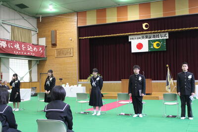本日卒業式でした。今回が50回目となる記念すべき卒業式でした。卒業生5人、笑顔で卒業できました。今年度からコロナ禍前の状態に戻しました。多くの来賓の方々、そして、家族の皆さんに見守られながらの卒業式となりました。皆さん、ありがとうございました。