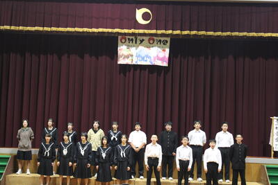 豊煌祭がありました。実行委員長あいさつに始まり、総合的な学習の時間の発表・意見交換会、イングリッシュフェスティバルで発表した4人の発表、各学年の出し物、煌めきショータイム、豊根音楽隊と続き、全日程を終えました。全生徒が力を発揮した会となりました。「Only One ~魅せよう自分たちにしかない色を~」のスローガンに込められた思い、「他にない私たち一人一人の色を出す」「見ている人も楽しませる」「私たちでつくる」「個性を出す」「私たちの色(個性)で染めたい」「一人一人が輝ける発表をする」を達成できたのではないでしょうか。