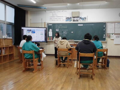 村役場の塚本さんを講師にむかえ、1時間お話を聞きました。先日の豊煌祭(文化祭)の時の総合的な学習の発表を現実的なものにしていくための橋渡しの話でした。