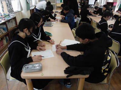 開会式から始まり、卒業生へのインタビュー、在校生からの出し物、3年生からの出し物、有志発表、教職員からの出し物、3年生からのメッセージ、色紙渡し、写真撮影、閉会式と盛りだくさんの内容でした。3年生からは感謝の言葉がたくさん聞かれました。また、楽しかったとの感想も多くありました。勉強しっかりやりんよとのアドバイスもありました。