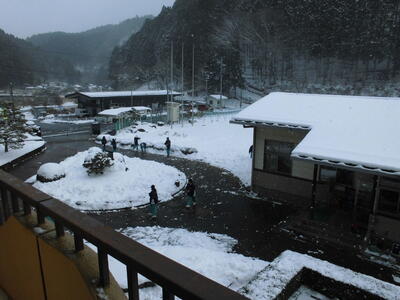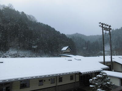 昨日に続き、雪が降っています。