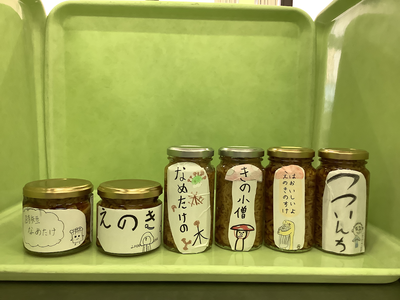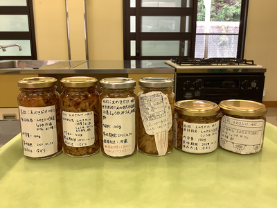 2年生が加工食品の学習からなめ茸を作りました。食品表示も学習した事を生かして書いてあります。商品名は各自で考えていて面白いと思いませんか?今日の夕食で、早速食卓に並んだら嬉しいです。
