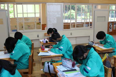 3年生は実力テストでした。先日の全国学力学習状況調査では国語、数学と、アンケートの3時間でしたが、今日はフルに5時間がんばりました。
