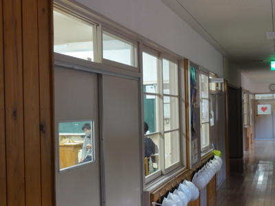 さらに、在校生は遮蔽板を立てます。マイクも使います。