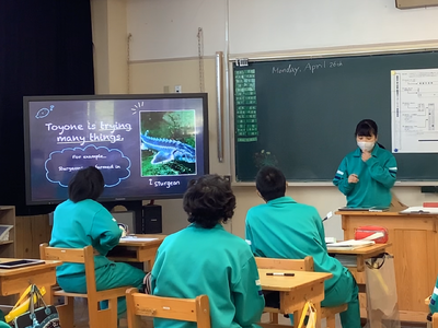 3年英語では、iPadのプレゼンソフトを使って、豊根村の紹介をしました。