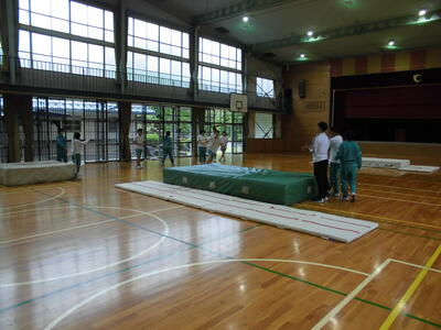 高跳びの授業でした。高跳びのバーをゴムひもに代えて、安全に行っていました。踏切の時、手を高く上げて、重心を上げるんだよ、など高く体を持ち上げるための練習をしていました。背面跳びのコツをたくさん教えてもらって、美しく、高く跳べる日を目指して頑張っていました。