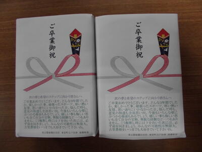 豊根村商工会さまからもいただきました。ありがとうございます。こちらも、卒業式に渡します。