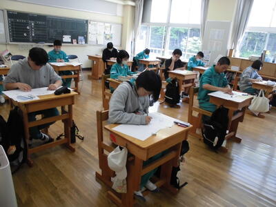 テストでした。とても静かに力の単元のテスト問題を解いていました。力の矢印を正確に書けている生徒が多かったように見えました。