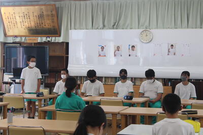 9月21日5時間目に、後期生徒会役員を決める立会演説会と投票がありました。定員4名のところに6名が立候補しました。1年生3名、2年生3名です。それぞれが、今の学校をより良くしたいという思いを述べました。
