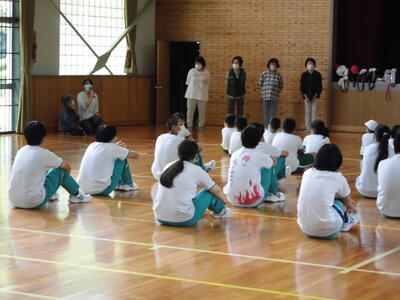 5時間目は豊根音頭の練習です。はじめに少し踊って、どんな踊りであったか思い出しました。そのあとで、歌詞を見て、豊根の地名や特産物を探しました。曽川御池、大入川、アユ、シイタケ、花祭り。気を付けることは、指先を伸ばし、指先を見る。回るときは、足を曲げるなど。月の作り方も教わりました。