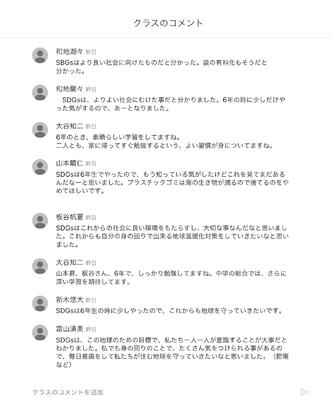 月曜朝礼の代わりに校長が、SDGsの動画をグーグルクラスルームにアップしたところ、1年生が積極的にコメントをしました。