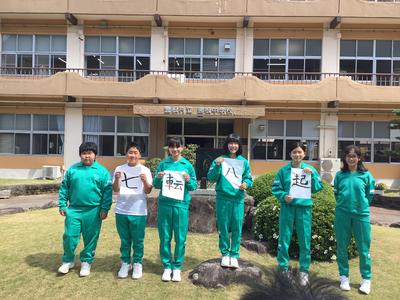1年生は1時間目に学級訓のための記念写真を撮っていました。