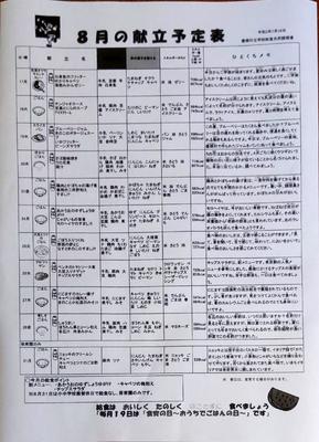 初めて見たのではないかと思われる、”8月”の献立予定表です。