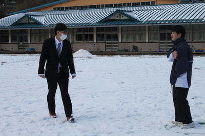 1年担任も一緒になって、かまくらを作っていました。こういうチャンスで魅力ある授業ができるのも、小さな学校ならではです。