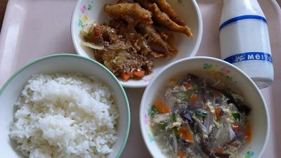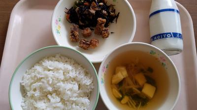 ごはん・牛乳・まぐろの生姜揚げ・ひじきの含め煮・玉子豆腐汁