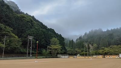 今朝の運動場。これからラインをひきます。空はごらんの通り。