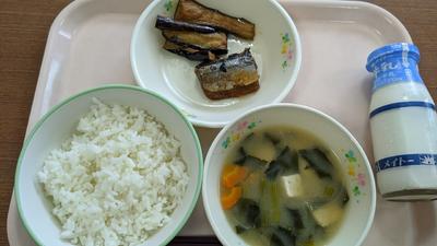 牛乳・ごはん・さんまのみぞれ煮・茄子の煮びたし・白みそ汁