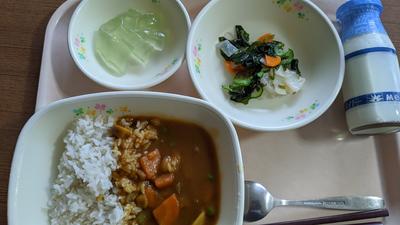シーフードカレー・牛乳・海藻と大根のサラダ・メロンゼリー