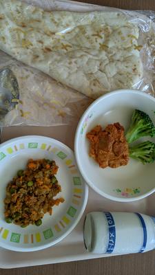 ナン・牛乳・タンドリーチキン・ブロッコリー・キーママタール