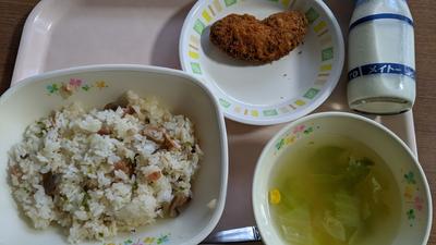 きのこピラフ・牛乳・ささ身大葉梅肉フライ・レタスのスープ