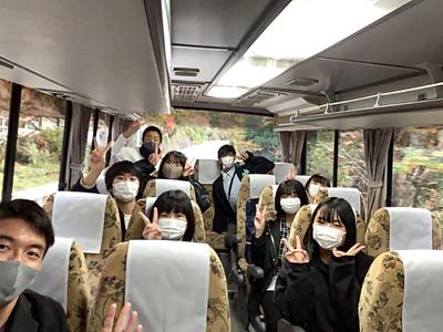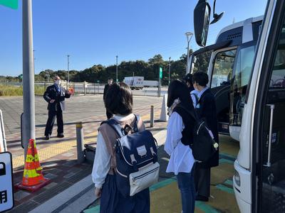 隣に県内の制服を着た中学生が乗っている、おそらく修学旅行のバスが止まってました。