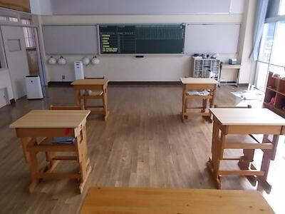 教室の机の天板を新しくしました。