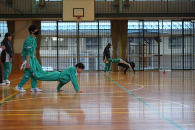 昨年度から1年生が、新1年生に中学校の生活について教えています。