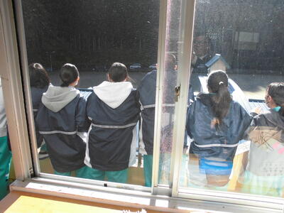 小学校ではマラソン大会を開催していましたので、3階の教室から応援をしました。