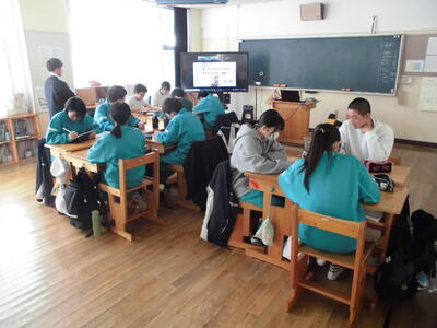 一段落した後、英語の授業です。「国境なき医師団」について、英語で学んでいました。