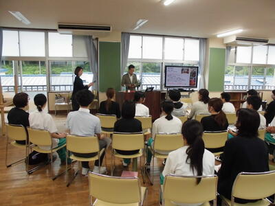 「スマホやゲームが脳に与える影響~豊かな心を守るために~」講師にスマホ依存防止学会アドバイザー坂本雅史氏を迎え、1時間講義していただきました。前頭前野の発達がとても大切であること。そのためには、前頭前野を働かせること。スマホやゲームは前頭前野が活動していないこと。依存症は刺激が強いとたくさんのドーパミンを出すため、やめられなくなること。など、子どもの健康な発達について貴重なアドバイスをいただきました。ありがとうございました。