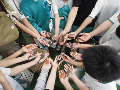 朝の活動の時間を使って、全校で長い距離を走る練習をしました。終了した後、教室で、後藤裕道さんからいただいたスポーツ飲料を飲みました。この日は、熱中症注意の日でもありましたので、ありがたく全校でスポーツ飲料をいただきました。スポーツ飲料は5月17日に届いていたのですが、暑さも本番になってきたこの日、はじめて飲ませていただきました。後藤裕道さん、ありがとうございました。