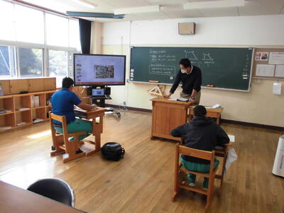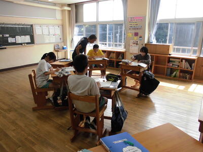 誰かを紹介する分を考えていました。姉や弟、世話になった人などを紹介していました。英語教師やALTの助けを借りながら、5つの文で紹介していました。canだけだったのをcan do に修正するのも英語だけで理解していました。