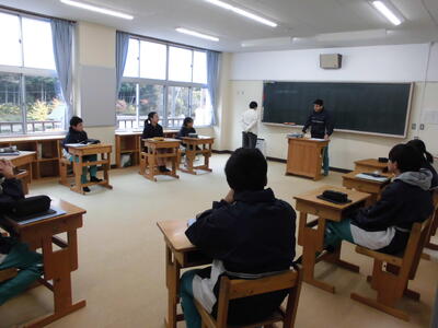 中国・四国地方から交通網について調べ、豊根村に行かせることは何か考えようといった内容でした。中国四国地方にとって、本州四国連絡橋は大きな変化でした。そのメリットもデメリットもあり、ストロー現象は、豊根村にも三遠南信道路の開通で考えられることでした。ストロー現象と村おこし、生徒たちは、もう一時間、この問題について考え、深めてゆきます。