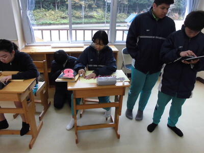 11月26日(いいふろの日)に行う「ゆ~ランド清流祭」に向けての準備です。はじめに3年生の司会で、全体の活動を全員が把握します。その後各係に分かれて活動を開始しました。富山の柚子を使ったドリンクを考える、看板を作る、インスタにあげる、配置やタイムスケジュールを検討する、豊根紹介ビデオを追加するなど、それぞれに活動していました。当日はバスボムつくり、缶パッチ制作とガチャガチャ、木のコースターつくり、LINEスタンプ、ぽんたデザインのハンカチ、合唱やバンド演奏などたくさんの事を企画しています。気になる方は、ぜひとも「パルとよね」にいらしてください。